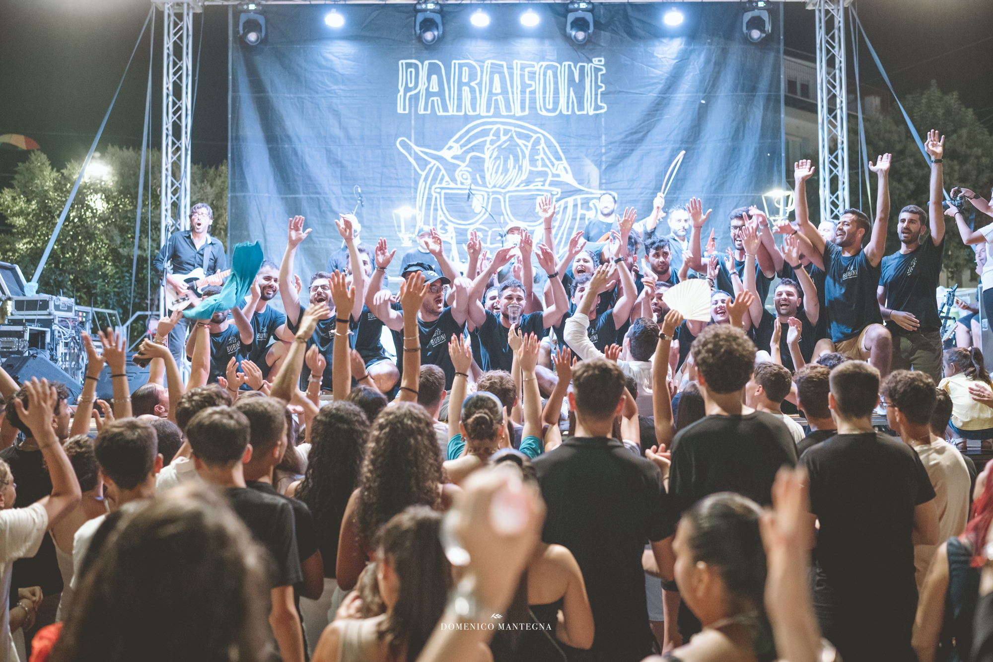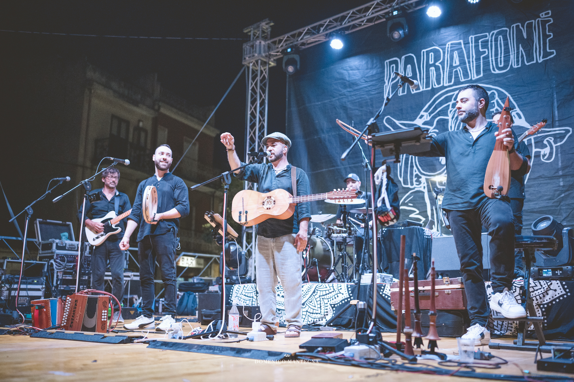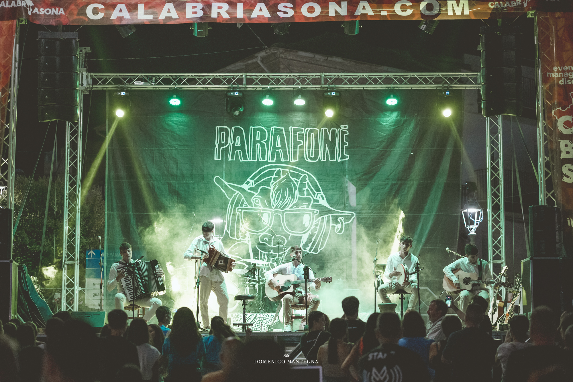 Sul palco i Parafoné, collettivo musicale che intreccia la tradizione calabrese con sonorità contemporanee, creando un ponte tra passato e futuro. La loro musica non è solo da ascoltare: è da vivere, da ballare, da sentire addosso. Un linguaggio che parla alle radici ma guarda avanti, capace di coinvolgere giovani e anziani nello stesso ritmo.